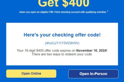 Leer mas...Bono de Fifth Third Bank: promoción de $400 en efectivo (noviembre de 2024)