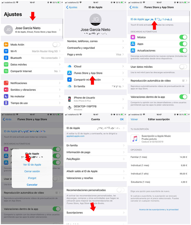 Pulsa Cancelar suscripción. Apple recomienda que te pongas en contacto con el servicio de atención al cliente si tienes problemas para cancelar tu suscripción.