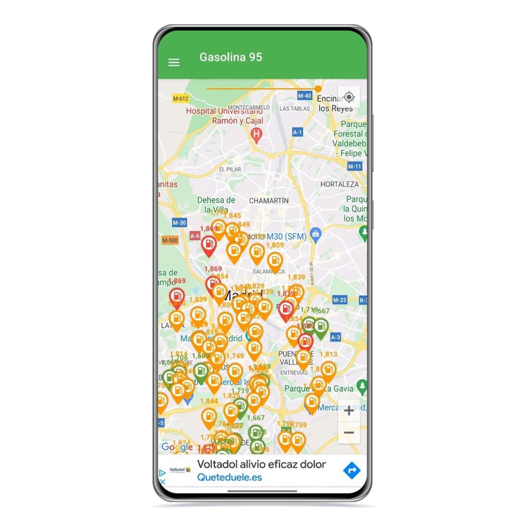 Resulta que MapQuest sigue funcionando y tiene una aplicación, Gas Prices by MapQuest, que es gratuita y te permite encontrar todas las gasolineras de tu zona. Al igual que Waze, te indicará los precios de la gasolina y el tiempo que te queda fuera de ruta.