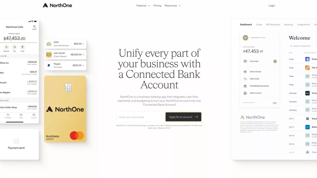 Descripción del Producto:NorthOne es una fintech para pequeñas empresas que ofrece cuentas de depósito con tarifas bajas e integración con software de contabilidad.