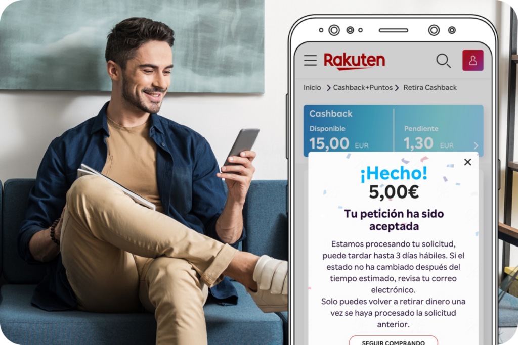 Para aumentar el negocio, las tiendas se asocian con aplicaciones como Rakuten para ofrecer a los compradores reembolsos en efectivo. Rakuten transfiere una parte del reembolso a los compradores cuando realizan una compra.